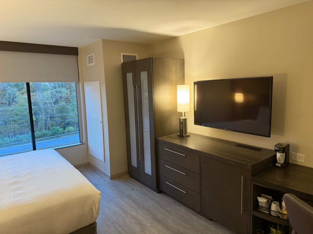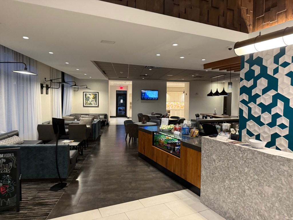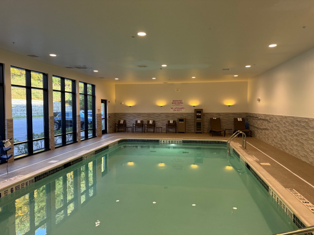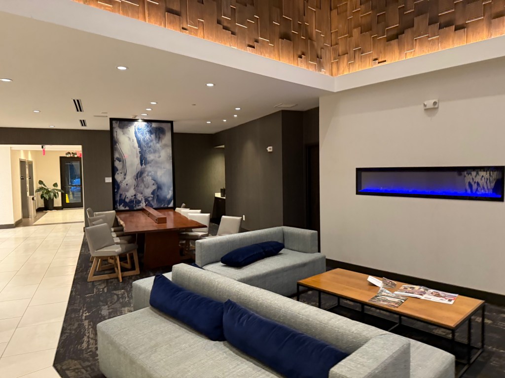 On Saturday October 18, we took a fall foliage road trip to Poughkeepsie and stayed at the Hyatt Place hotel. As you walk in, you are greeted with a nice lobby with front desk, breakfast area, sitting area, business center, and more.