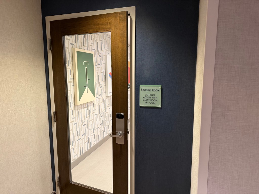 To find the pool, fitness center, and guest laundry, you have to take the elevator up to the 8th floor which is the top. The pool is inside the terrace room.
