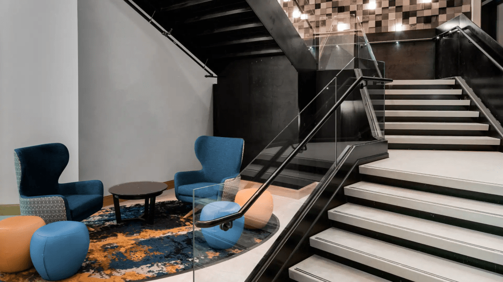 When you walk in the hotel, you are greeted with a stairwell in the entrance.